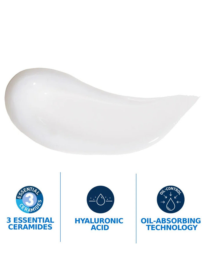 A daily lightweight moisturising gel-cream with Oil Absorbing Technology, Niacinamide, Hyaluronic Acid & 3 Essential Ceramides to help absorb excess oil while maintaining a healthy skin barrier for all day hydration, without the shine. Developed with dermatologists, for oily to combination skin.