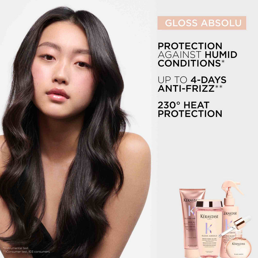 1: BATHE Start with the application of Bain Hydra-Glaze. Wet the hair thoroughly, then apply 1 pump (5ml) directly onto the scalp. Develop foam & perform the 3 gestures of the Kérastase Massage. Rinse and repeat if needed. 2: TREAT Step 1: Based on your diagnosis and consultation with the customer, select the appropriate Fusio-Dose booster: Brilliance (for enhanced shine) or Discipline (for increased smoothness and control). Mix the chosen booster with Concentré Nutritive. Apply the personalised Fusio-Dose mixture to each strand, focusing on the lengths and ends. Step 2: Without rinsing; layer 2 pumps of Fondant Insta Glaze over the Fusio-Dose application. Gently massage, and twist the hair to ensure even distribution. Leave it on for 3 minutes. Rinse thoroughly. 3: TEXTURISE – PRIME On towel-dried hair, apply up to 7 sprays of the Anti-Frizz Glaze Milk on lengths and ends, depending on hair length and thickness working section by section to protect hair up to 230°. Do not rinse. Proceed to blow dry. 4: TEXTURISE – FINISH After the blow-drying, apply a few drops, according to length, of Glaze Drops into your hands. Evenly distribute the oil through the lengths and ends, using your fingers to separate and define the hair, to add a final touch of shine and smoothness.