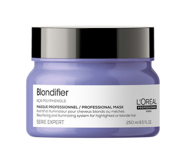 Resurface and illuminate blonde hair with the Blondifier mask. This nourishing mask is enriched with Polyphenols present in the Açai berry extract. It helps to replenish, smooth and nourish the hair fiber, enhancing shine and radiance of blonde hair.
