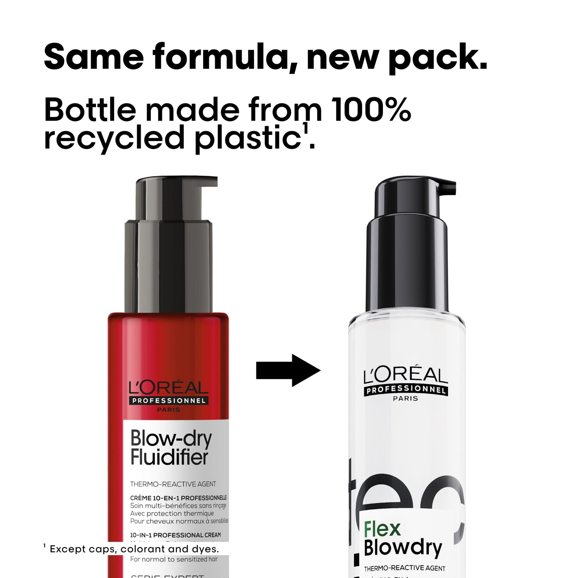 Apply 3 to 5 pumps to towel-dried hair, from lengths to ends, then blow-dry. Compatible with L’Oréal Professionnel Steampod.