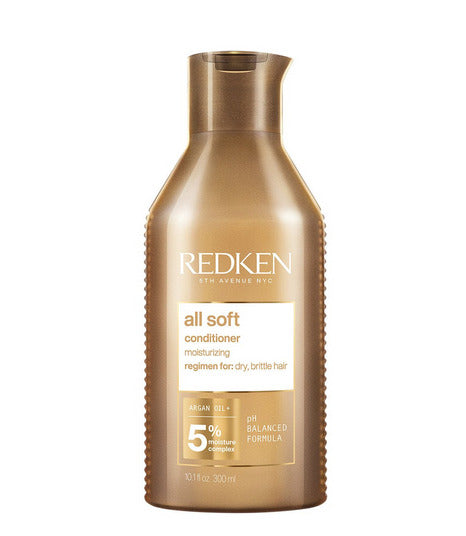 Made with Redken's Moisture Complex and Argan Oil, All Soft Conditioner detangles, moisturizes and softens dry, brittle hair. This conditioner provides up to 15x more conditioning and moisture when used as a complete All Soft haircare system. The All Soft conditioner detangles, replenishes, and provides intense softness and shine.